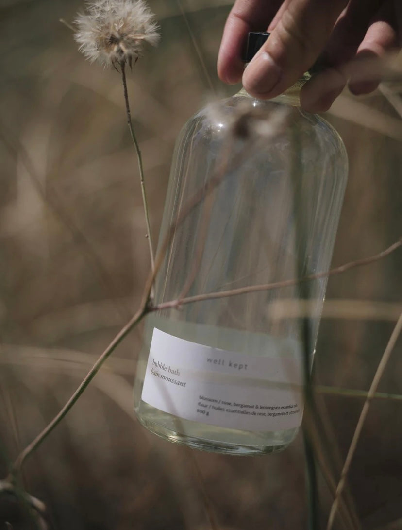 • bloom bubble bath comes in a glass bottle that’s perfect for gifting